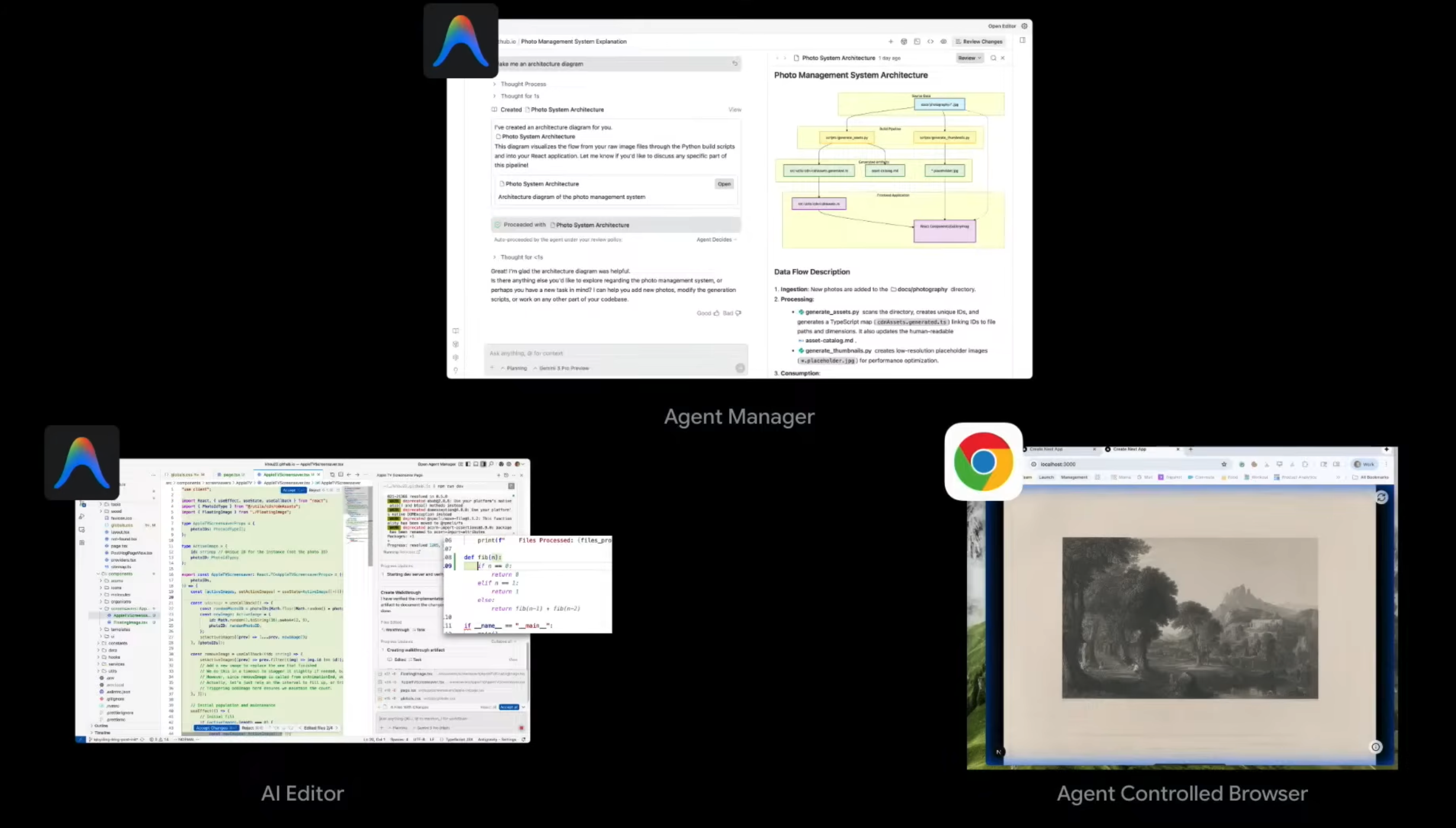 It’s an AI developer platform with three surfaces. The first one is an editor. The second one is a browser. And the third one is the agent manager. So we’ll dive into what this means, and what each looks like. So a paradigm shift here is that agents are now living outside of your IDE. And they can interact across many different surfaces that your agent or that you as a software developer might spend time in.